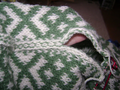 I remember why I dislike knitted-on sleeves. (The ones where you pick up and knit down to the wrist.) But I'm finishing something!